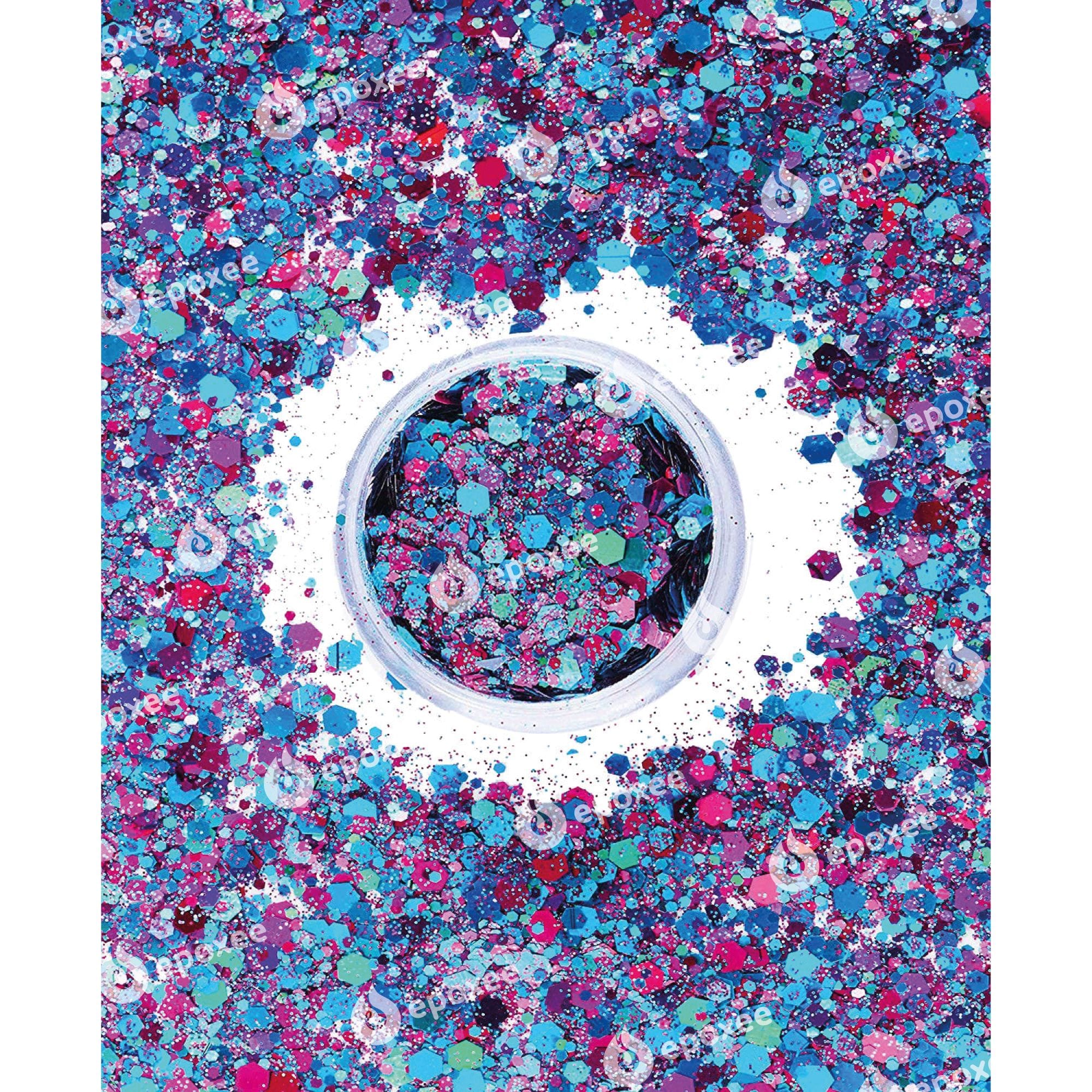 Sclipici hexagonale multicolore, nuanțate, holografice. 5 g de sclipici ambalate într-un recipient transparent cu capac cu filet. Diametru: 0,5-1-2-3 mm